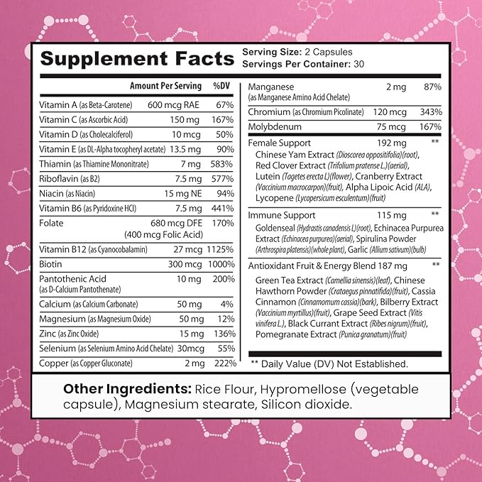 Women's Multivitamin – Complete Multivitamin for Women 50+ with Essential Vitamins A, B, C, D, E, Calcium & Iron – Supports Energy, Mood, Hair, Skin, Nails & Overall Health – 60 Capsules