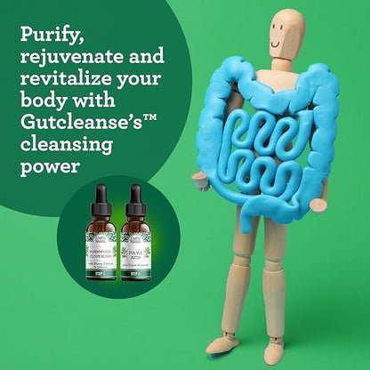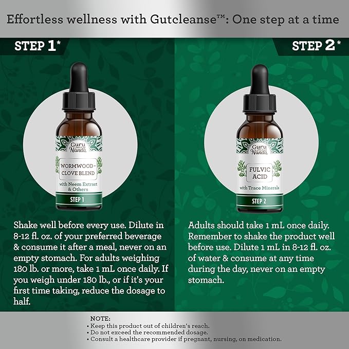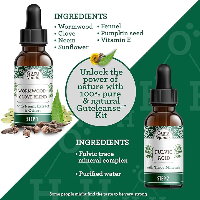 GuruNanda Gutcleanse 2-Step Kit - Dietary Supplement to Help with Digestion - Blend of Fulvic Acid, Wormwood, Clove & Neem Extract, 2x1 FlOz