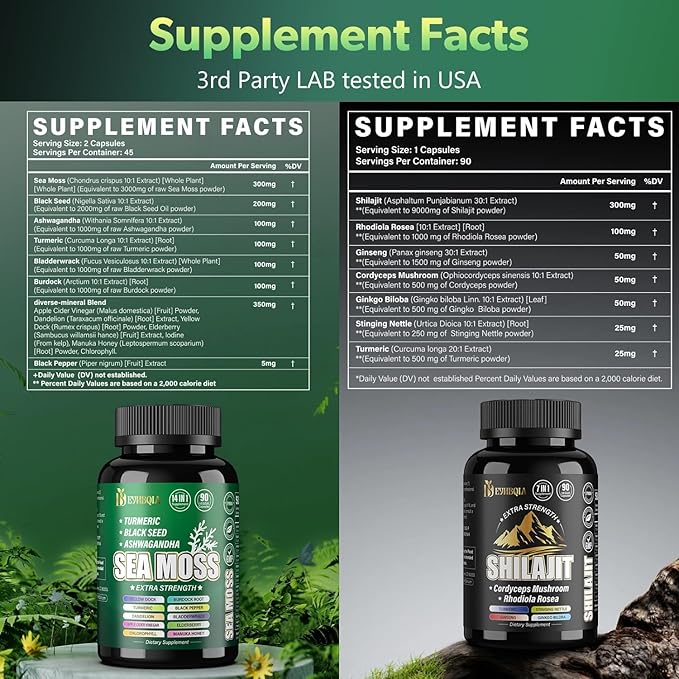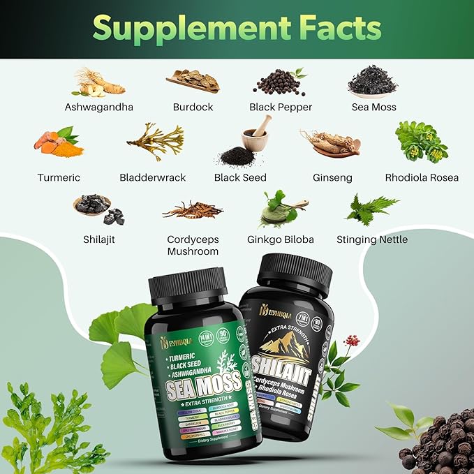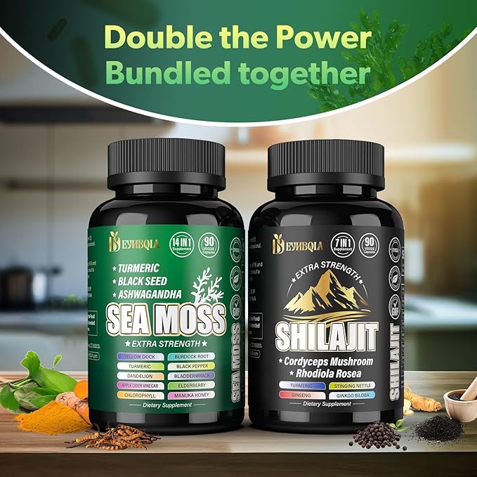 - 【DYNAMIC VITALITY SET】 - This special formula combines Shilajit, enriched with 7 potent ingredients, and Sea Moss, a Moss Formula with over 14 essential elements. Experience the overall benefits of Black Seed Oil, Rhodiola Rosea, Ashwagandha and more in two supplement. discover the power of “all-in-one” supplements today!