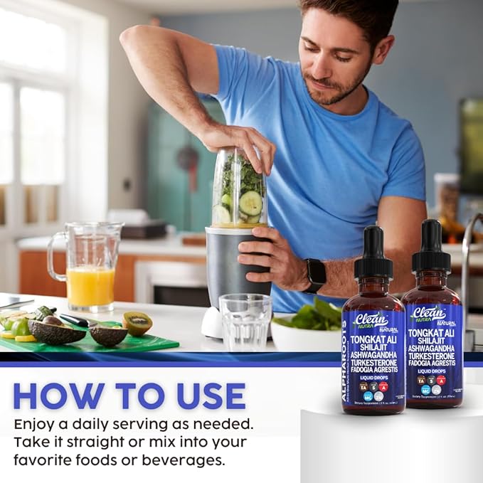 Tongkat Ali Liquid Drops Shilajit, Ashwagandha, Turkesterone, Fadogia Agrestis, Magnesium, Irish Sea Moss, and Zinc Herbal Supplement by Clean Nutra
