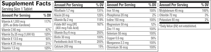 - Vitamins for women and men with iron, antioxidants and B Vitamins for energy, metabolism and immunity support.
