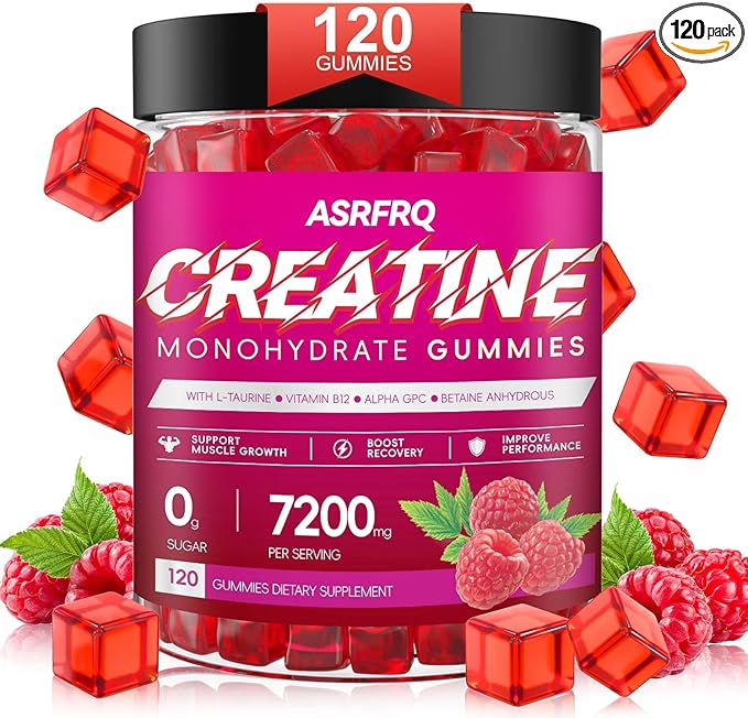 Creatine Monohydrate Gummies for Men & Women 120 CT - 7200mg of Creatine Monohydrate per Serving, Chewable Creatine Monohydrate for Muscle Support & Energy Boost, Sugar Free, Vegan (Raspberry Flavor)