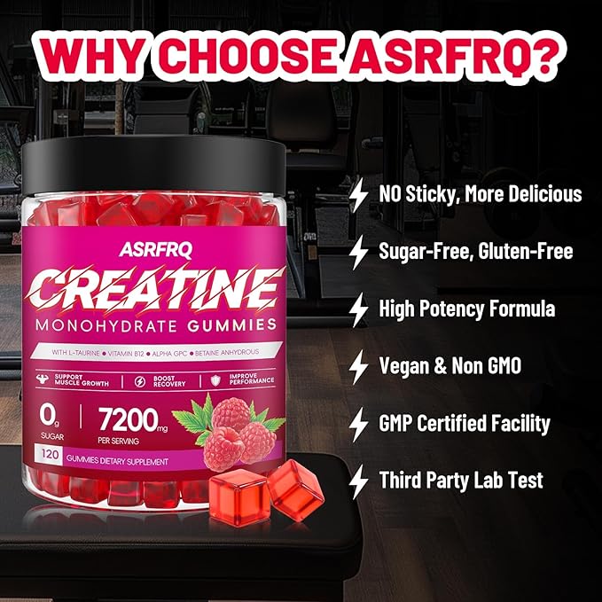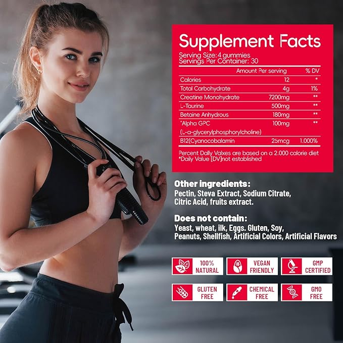 - 【Vegan, Gluten Free, Sugar Free】Each bottle contains 120 count Vegan, Non-GMO & Gluten-free, Sugar-free creatine monohydrate gummies. Super delicious and enjoyable taste.