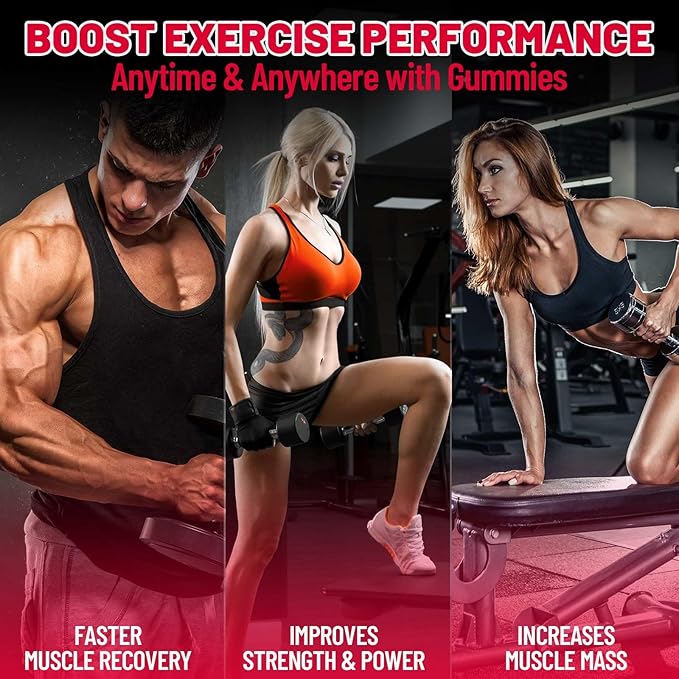 - 【Key Benefits】Our Creatine monohydrate gummies are an easy way to consume, 2 gummies per serving, you can take it at any time & anywhere. It increases muscle strength, muscle recovery, improve endurance and energy boost. Suitable for a variety of users, and enjoyable taste.