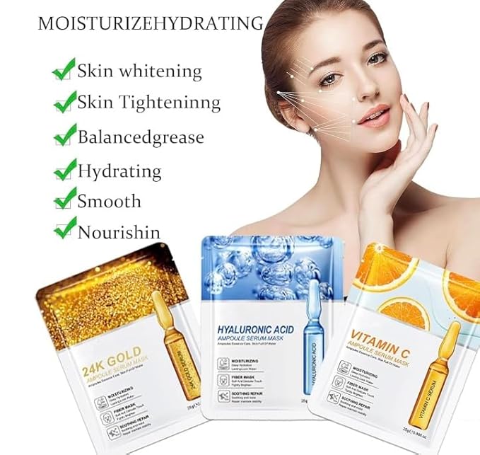 Korean Skin Care Multi-Vitamins Face Sheet Mask, Pack of 10 vitamina C