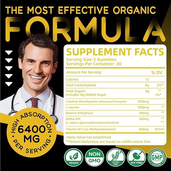 - Commitment to Excellence: Produced in a facility compliant with strict cGMP standards, our Creatine Monohydrate gummies, in Creatine 6400mg, stands as a testament to our dedication to quality. You can trust in our product's consistency and excellence, batch after batch.