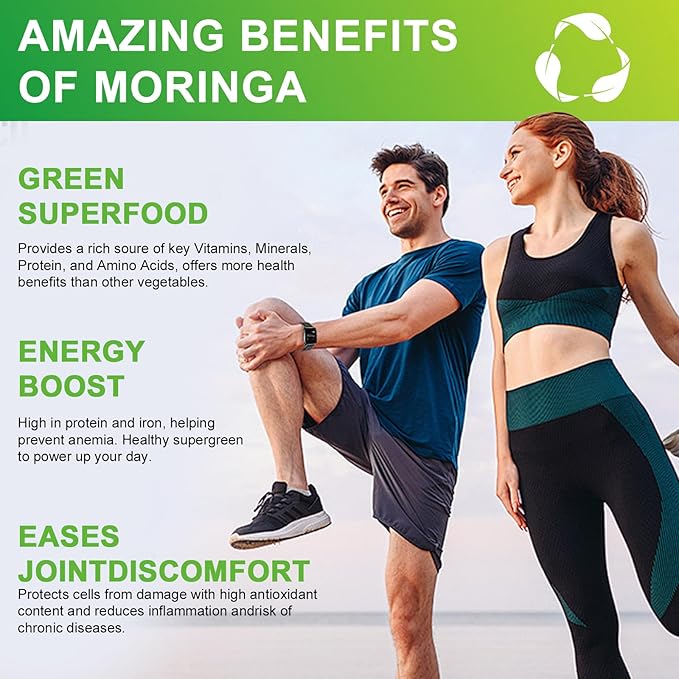 - 100% Raw and Pure - Our Moringa supplement products are produced in GMP certified manufacturing facilities to ensure quality. This supergreen brings a clean energy power up anytime, without caffeine, milk or sugar. Zero fillers or preservatives, enjoy the benefits of 100% organic Fresh Moringa leaf powder.