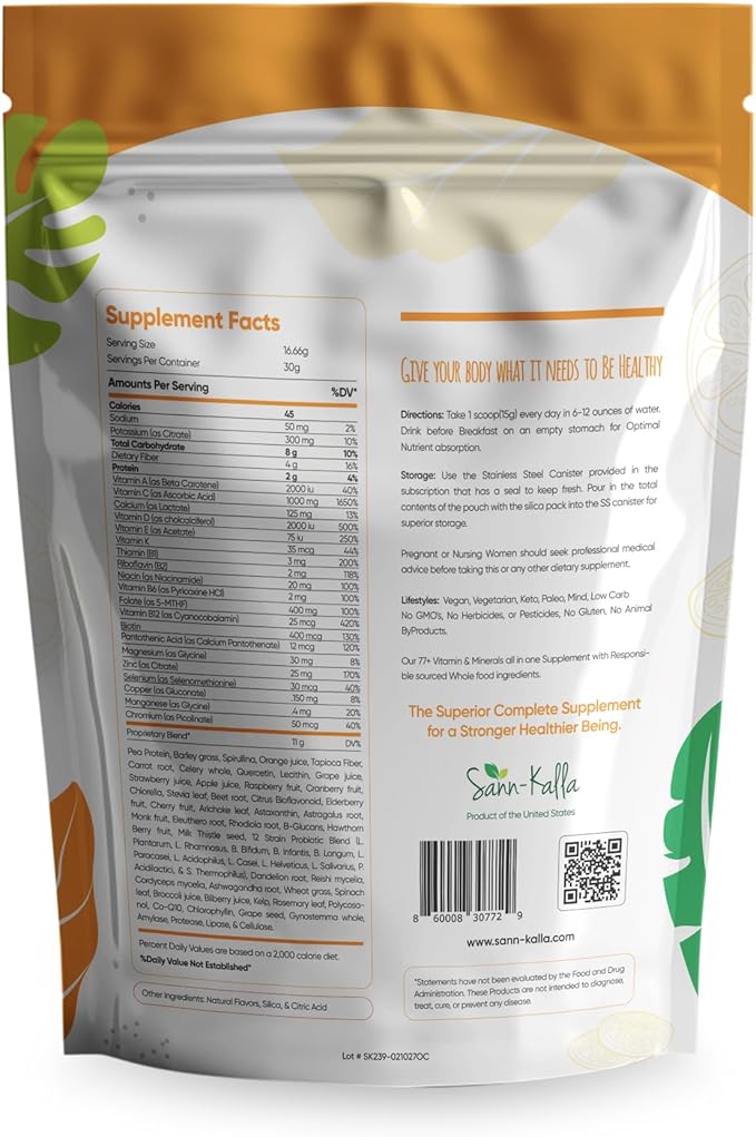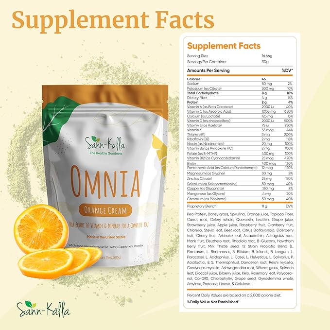 - Sann Kalla Omnia provides Comprehensive Daily Nutrition. A blend of vitamins, minerals, and whole-food sourced ingredients, providing you with a complete daily supplement that supports energy, immunity, gut health, and overall wellness.