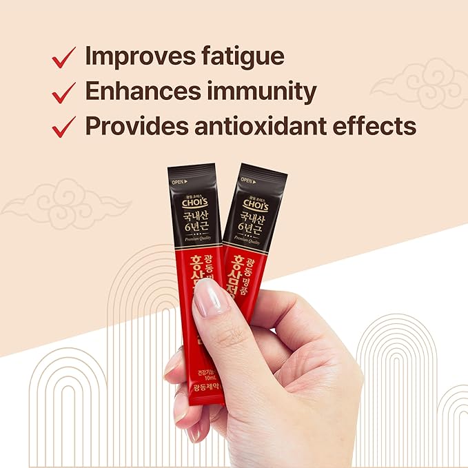 • 6-Years Grown Korean Red Ginseng - Our ginseng roots are harvested after 6 years to ensure they reach maximum ginsenoside content, traditionally known for relieving fatigue and providing robust immunity support.
