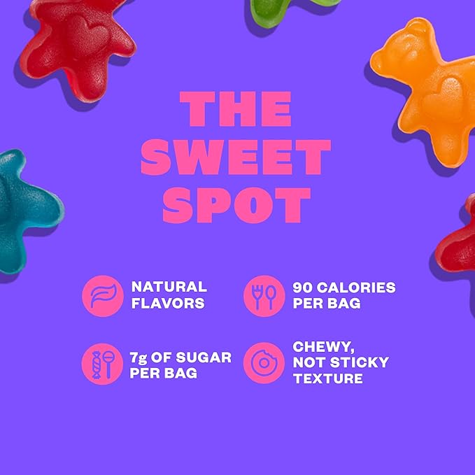 - WHY YOU'LL LOVE 'EM: Here we go...90 calories per bag. The best chewy texture. Sweetened with prebiotic fiber. Flavored with natural flavors. Colors from fruits and veggies. Free from titanium dioxide, red dye No. 3 and red dye No. 40.