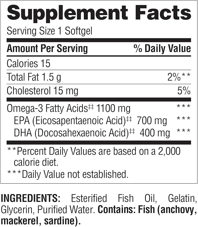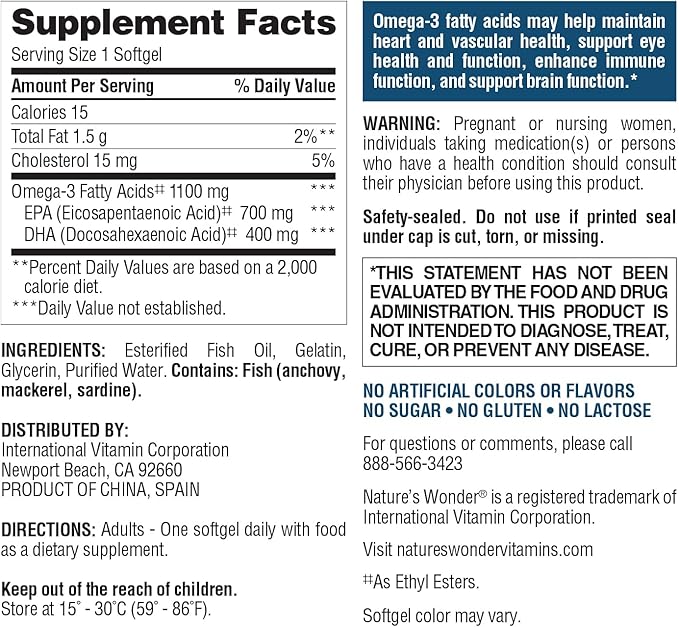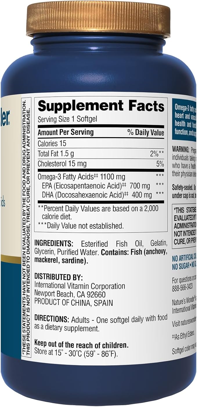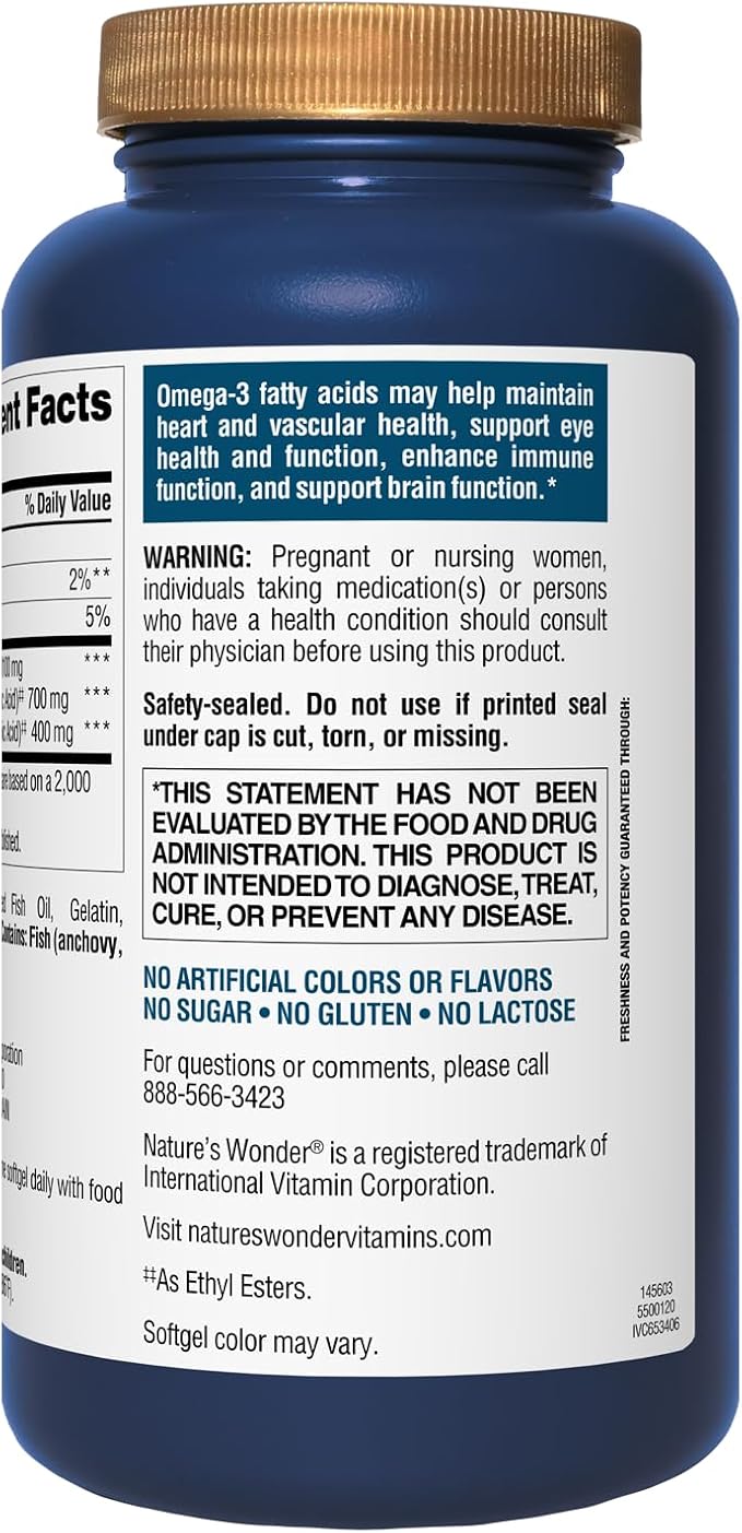 Nature's Wonder Fish Oil 1100 mg Omega-3 Fatty Acids, EPA & DHA for Healthy Joints, Heart, Immune System, 120 Day Supply of Softgels
