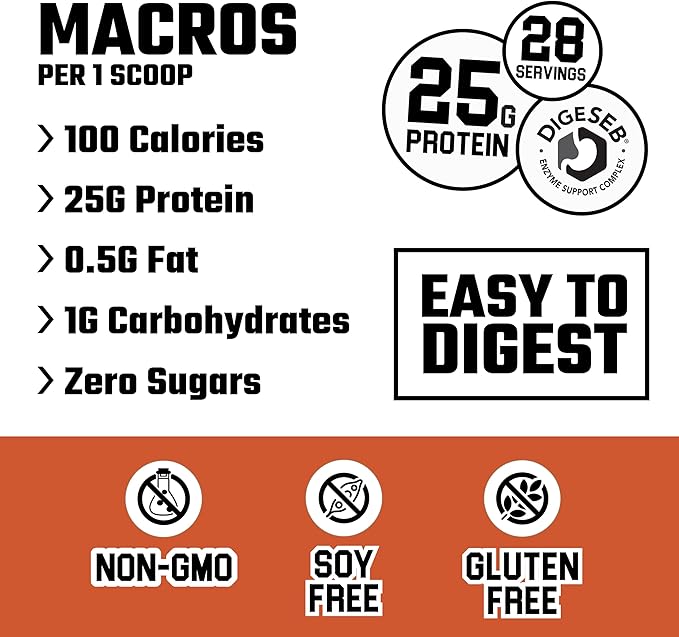 - 25G of Protein per serving from 100% Whey Protein Isolate