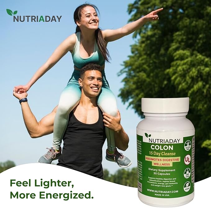 - NUTRIADAY’S COLON 15 DAY CLEANSE: is a Gluten-Free, Non-GMO, and Vegan Easy-to-Take Capsules. The ultimate Advanced 15-Day Gut Cleanse It has Powerful Herbal Ingredients which supports Digestive Health & Detox This potent formula is designed to support regular bowel movements, relieve constipation, and reduce bloating, leaving you feeling lighter and more energized. Key Ingredients: Senna Leaf: Known for its natural laxative properties, Senna Leaf helps stimulate bowel movements and relieve constipation. Cascara Sagrada Bark: This gentle, natural laxative works to cleanse the colon, promoting regularity and improving digestive health.