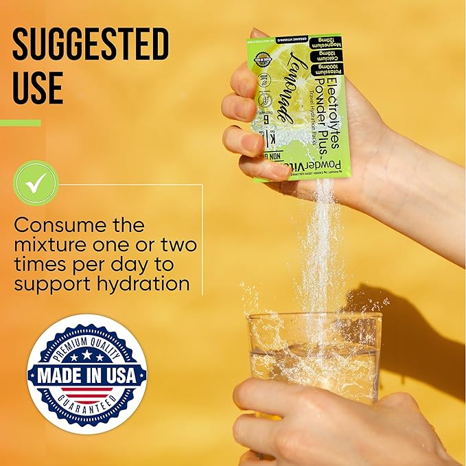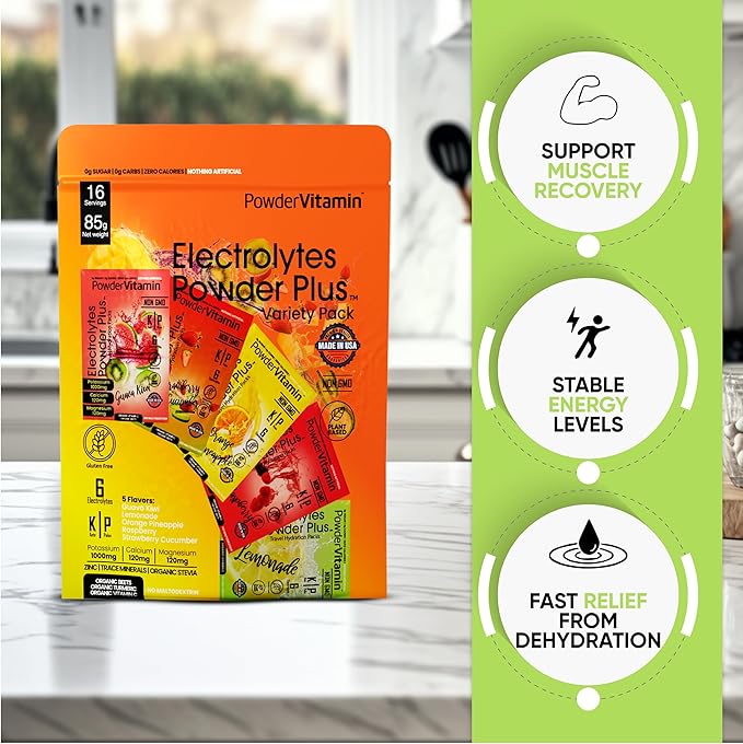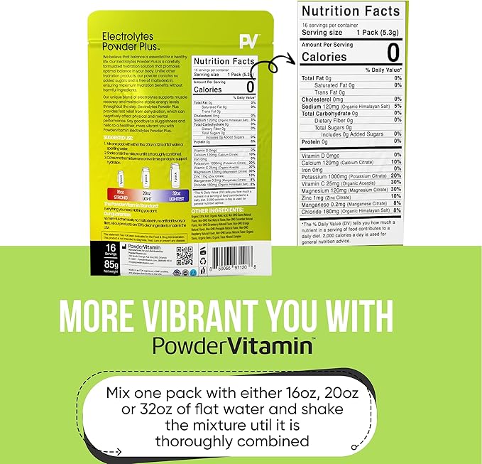 - Keep Yourself Hydrated – Without added calories. PowderVitamin Sugar-Free Electrolyte Powder Plus aids in per workout & post workout muscle recovery with potassium and essential mineral salts.