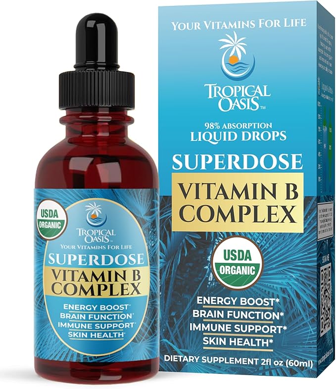 Superdose Organic Vitamin B Complex Liquid Drops | 125,000% DV Vitamin B12, B6, Biotin, Niacin, Folate | Energy, Brain Health, Immune Support | USDA Organic, Vegan, Non-GMO | 60 Serv, 2 Mo. Supply