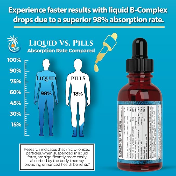 - Convenient Liquid Drops: Liquid form ensures 98% absorption, delivering nutrients more effectively and faster than pills, making it easy to add to your daily routine.