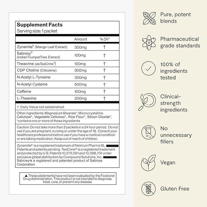 - Convenient Daily Dose Packets - This kit includes a 24-day supply of nootropic brain supplements for energy support. Take one packet a day to feel like an optimized version of yourself—more awake, focused, and productive.