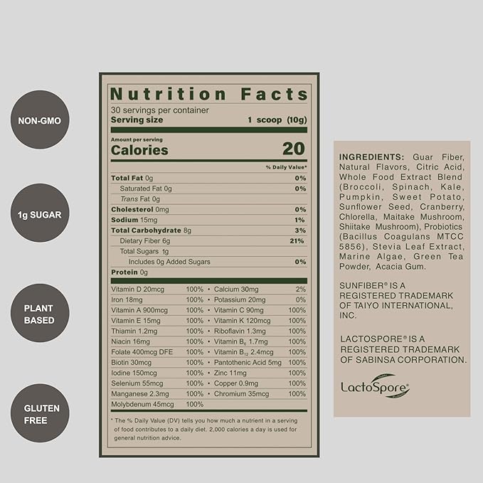 - PLANT-BASED DRINK MIX: Uniquely formulated with daily health essentials including nutrient-dense whole foods, vitamins, minerals, adaptogens, prebiotics and probiotics in one naturally flavored, refreshing peach green tea drink mix.