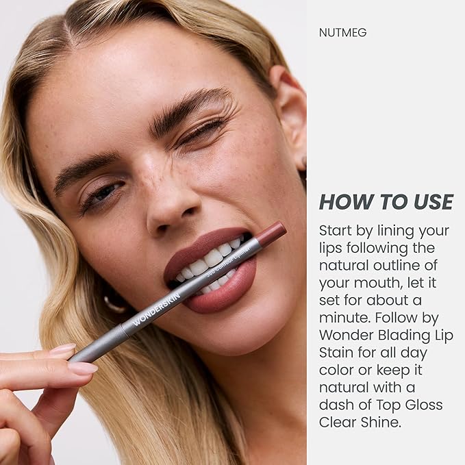 Wonderskin Lip Liner Pencil - 360 Contour Lipliner, Long Lasting, Sharpenable, Waterproof and Transfer-Proof Brown Lip Liner Pencil (Nutmeg)