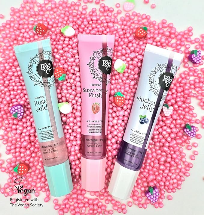 Rosee Lip Gloss Vegan & Cruelty Free Treatment, Professional Make up, Long Lasting Glossy with Shea Butter, Moisturize, Protect & Smooth, High Shine, Non-Sticky (f. Sparkling Rose Gold, 0.5)