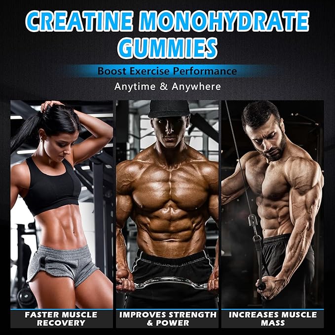- EFFICACY OF CREATINE: Creatine is one of the most effective, safe, and well-studied supplement to improve performance,increased muscle endurance,muscle growth or recovery. These are effective creatine monohydrate gummies for men and women.