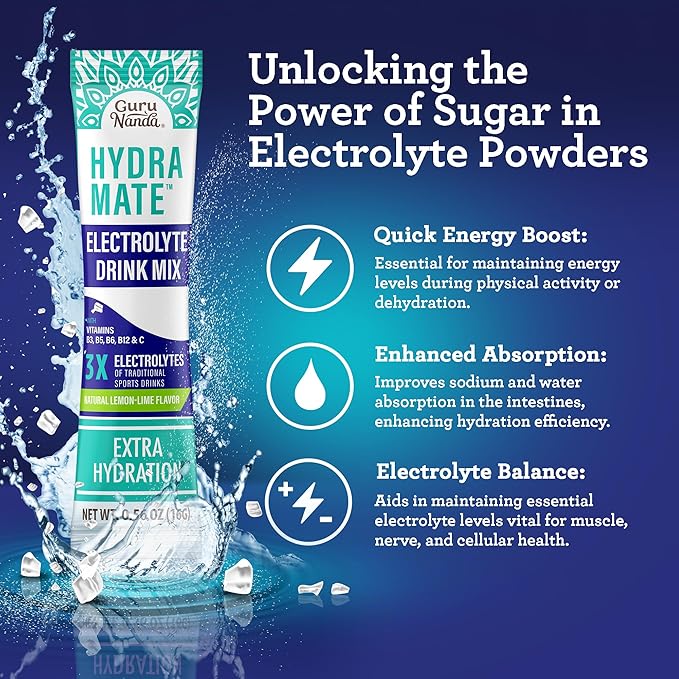 - 12-COUNT CONVENIENCE FOR ULTIMATE HYDRATION: The GuruNanda Hydramate contains 12 sachets. Mixing just one sachet in a 16 Oz glass offers hydration equivalent to drinking 3 glasses, ensuring quick absorption of electrolytes and water to keep you energized.