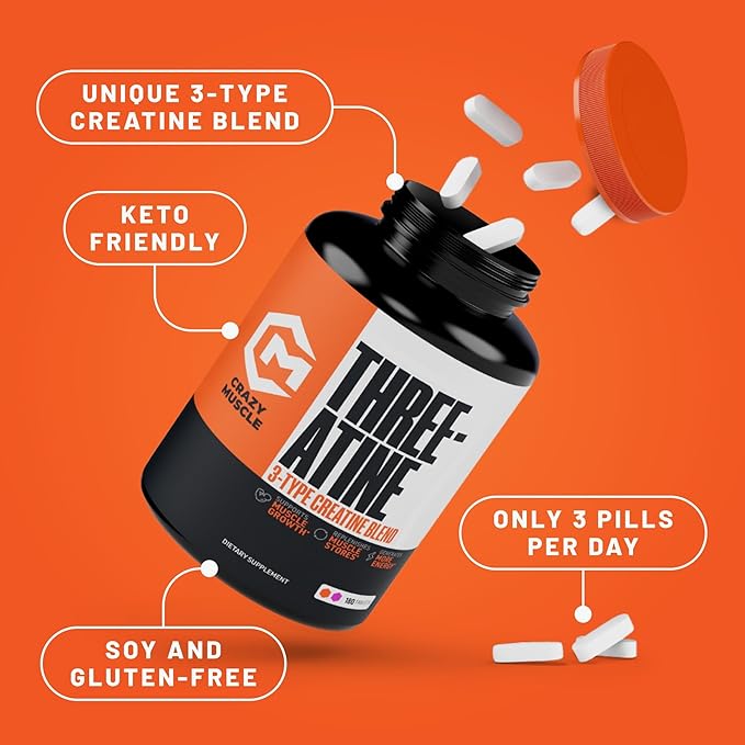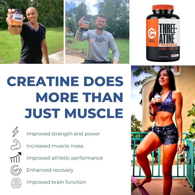 - Elevate your workout with Crazy Muscle's Three-atine, a unique creatine blend including creatine monohydrate. Designed to support the fitness journey of both men and women, not intended to treat or prevent any disease.