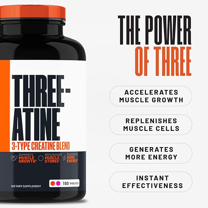 - Incorporate our Three-atine Creatine Pills into your routine easily with no loading phase required. Ideal for pre and/or post workout use for both men and women. Just add water or juice!