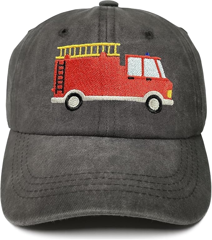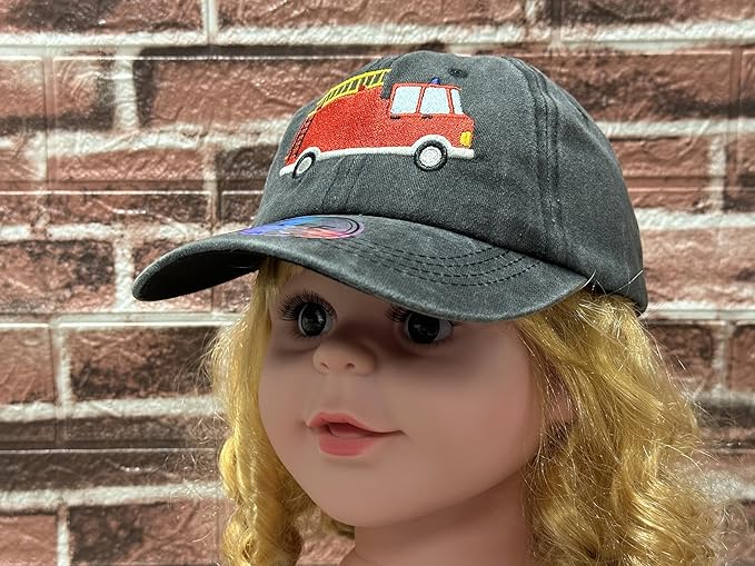 - Unique Design: Do you know a little one who loves fire trucks or dreams of being a firemen? Our adorable washed black baseball cap features a cute red fire truck embroidered on the front. It's an ideal gift or surprise for any little boy or girl, future firefighter, or fire truck enthusiast. This toddler dad hat is also great for a kid's fireman birthday party theme! It's perfect for children who love fire engines and emergency vehicles.