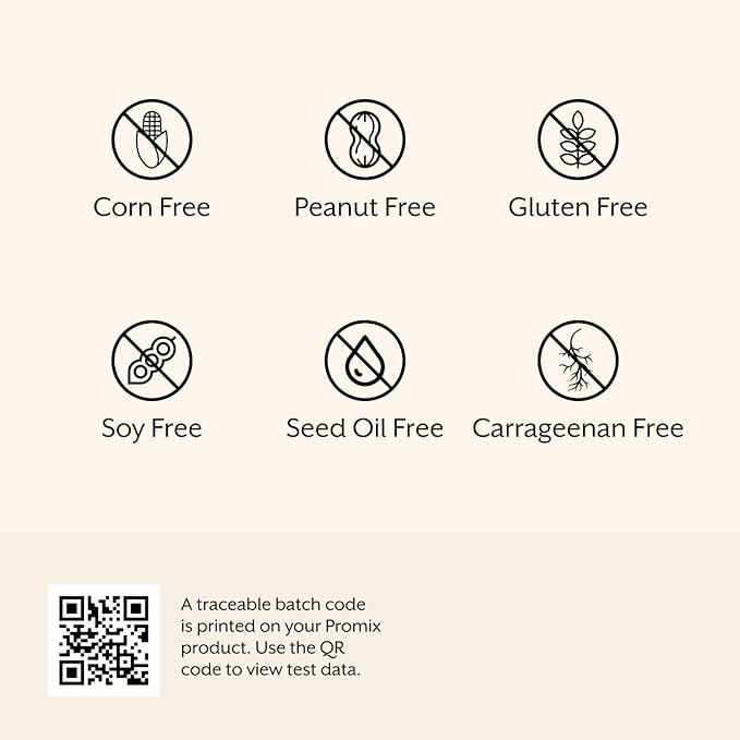 - Whole Ingredients: At Promix, we partner directly with farms and producers to ensure our products are made with high-quality ingredients like hormone-free grass-fed whey protein, organic coconut oil, and flavors from natural sources.