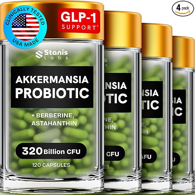Akkermansia Probiotic 320 Billion CFU| GLP-1 Probiotic and Prebiotic | Akkermansia Muciniphila Probiotics For Women Digestive Health | Inulin Prebiotic Fiber Capsules Astaxanthin & Berberine 480 count