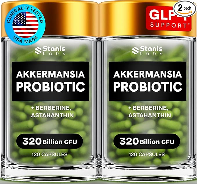 Akkermansia Probiotic 320 Billion CFU| GLP-1 Probiotic and Prebiotic | Akkermansia Muciniphila Probiotics For Women Digestive Health | Inulin Prebiotic Fiber Capsules Astaxanthin & Berberine 240 count