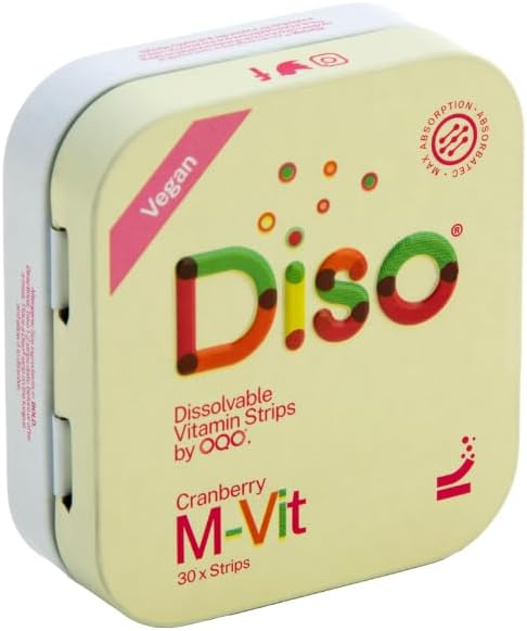 DISO - M-VIT - Multivitamin Dissolvable Oral Supplement Strips, Cranberry Flavor, Vegan, Sugar Free, High Absorption, Gluten Free, Individually Wrapped, 30 Count