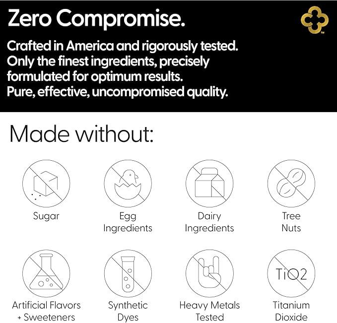 - PREMIUM QUALITY, MADE IN USA: Produced in a cGMP-certified facility, our supplement is free from sugar, artificial flavors, sweeteners, tree nuts, synthetic dyes, titanium dioxide, dairy, and egg ingredients.