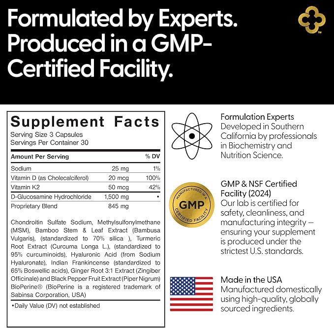 - PROMOTES CARTILAGE HEALTH: Our blend of Glucosamine and Chondroitin is designed to support the maintenance of healthy cartilage structure and joint function.