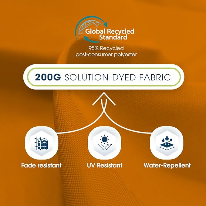 - UPGRADED ECO-FRIENDLY &RECYCLED FABRIC: This maket umbrella has a GRS certified canopy that is made of recycled Polyester Draw-Texturing-Yarn. This PU coated canopy has a US Standard AATCC 16 Grade 5 colorfastness to light, the thick high quality material provides excellent UV resistance, water proofing and fade resistance.