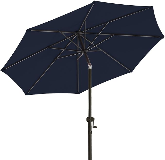 wikiwiki 10 FT Patio Umbrellas Outdoor Table Market Umbrella with Push Button Tilt/Crank, 8 Sturdy Ribs, Fade Resistant Waterproof POLYESTER DTY Canopy for Garden, Lawn, Backyard & Pool, Navy Blue