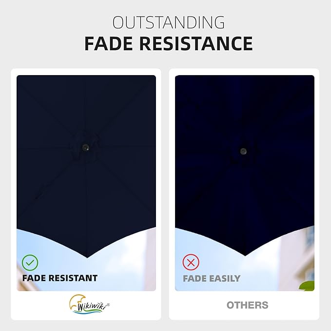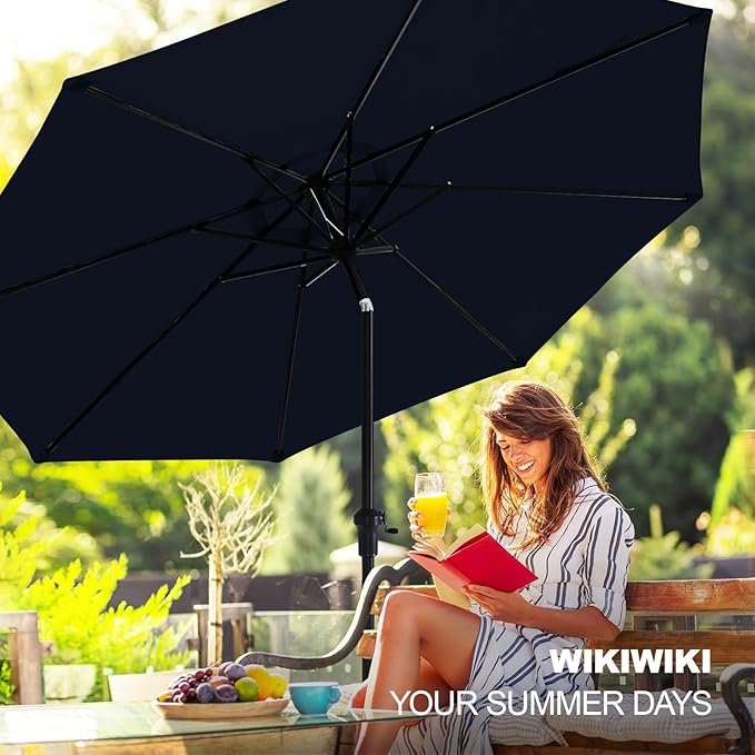 - EASY TO ADJUST: Open, close and tilt the umbrella with ease! Wikiwiki market umbrella is designed with a crank system for easy opening and quick use. Push button tilt allows for more angles of shade protection and allows for coverage all day.
