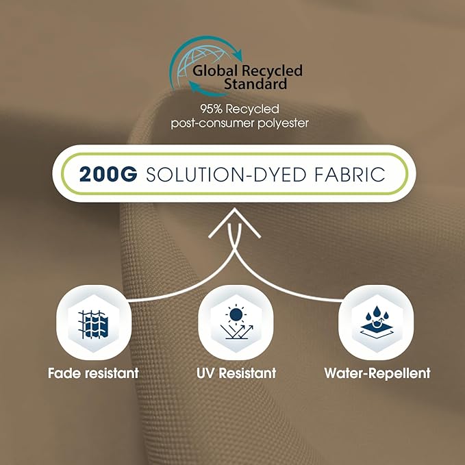 - UPGRADED ECO-FRIENDLY &RECYCLED FABRIC: This maket umbrella has a GRS certified canopy that is made of recycled Polyester Draw-Texturing-Yarn. This PU coated canopy has a US Standard AATCC 16 Grade 5 colorfastness to light, the thick high quality material provides excellent UV resistance, water proofing and fade resistance.