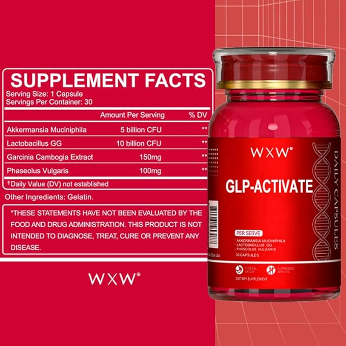 WXW GLP-1 Supplement, GLP Activate, GLP1 Supplements Naturally Support with Akkermansia Probiotic, Lactobacillus GG for Metabolism Gut Health, 30 Capsules