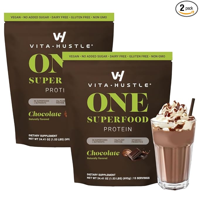 - SATISFYING & SUPER DELICIOUS – Filling without the fillers, silky-smooth and oh-so-satisfying, ONE by VitaHustle is never chalky or clumpy. Enjoy it blended over ice with water or plant-based milk, or add it to your favorite smoothie! Use it as a meal replacement, snack, or after-workout recovery shake.