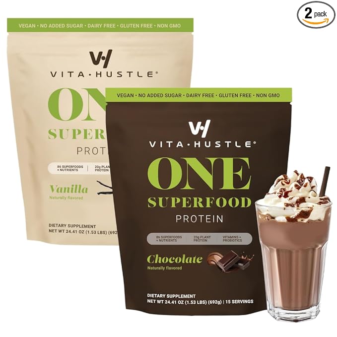- SATISFYING & SUPER DELICIOUS – Filling without the fillers, silky-smooth and oh-so-satisfying, ONE by VitaHustle is never chalky or clumpy. Enjoy it blended over ice with water or plant-based milk, or add it to your favorite smoothie! Use it as a meal replacement, snack or after workout recovery shake.
