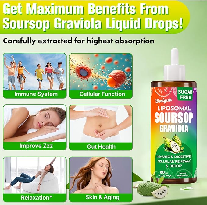 - Liposomal Technology for Maximum Absorption & Potent: Our unique liposomal technology ensures the highest bioavailability of our 880MG Soursop Bitters Liquid, meaning the active ingredients are encapsulated in liposomes for better absorption by the body. And Liquid Extracts are preferred to the capsules because they are processed through the digestive system and absorbed in the bloodstream faster, this maximizes the health benefits, ensuring the full potency of each ingredient can be absorbed