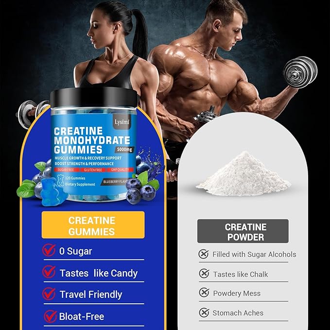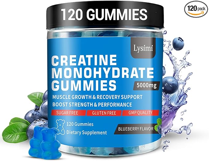 Creatine Monohydrate Gummies 5000mg for Men & Women, Creatine Monohydrate for Muscle Strength, Muscle Builder, Energy Boost, Pre-Workout Supplement, Blueberry Flavor, 120Count