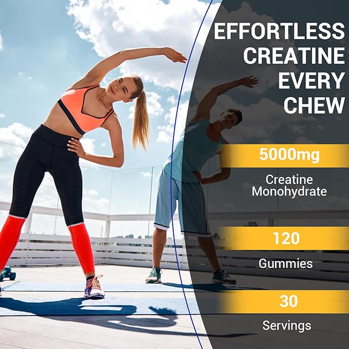 - Advanced Formula & Maximum Potency: Our creatine monohydrate gummies contain 5 grams of pure creatine monohydrate per serving, combined with L-Taurine, Vitamin B12, anhydrous Betaine, and Alpha GPC to maximize effectiveness. Our highly effective, professional formula gummies are designed specifically for both men and women, allowing you to feel the difference.