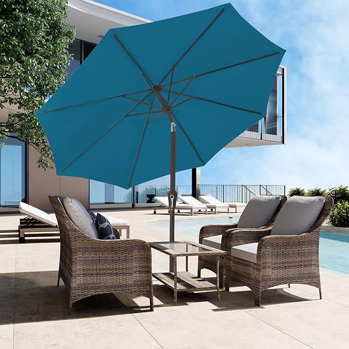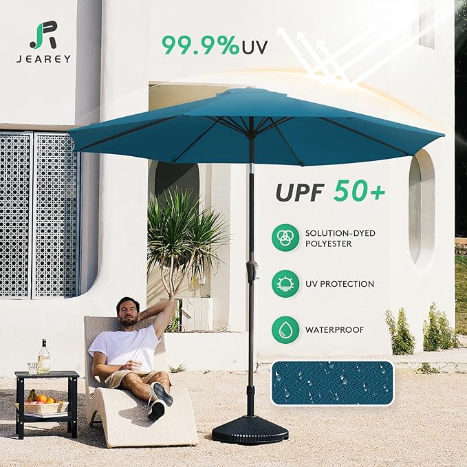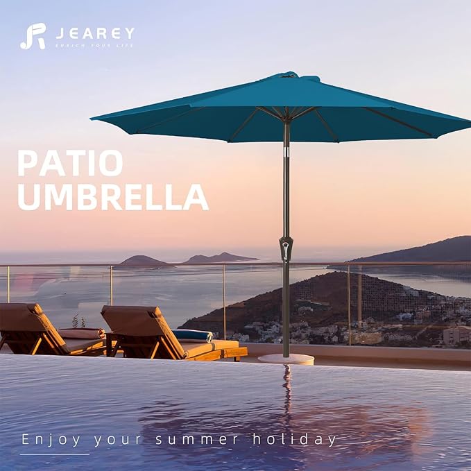 JEAREY 9FT Outdoor Patio Umbrella Outdoor Table Umbrella with Push Button Tilt and Crank, Market Umbrella 8 Sturdy Ribs UV Protection Waterproof for Garden, Deck, Backyard, Pool (Lake Blue)