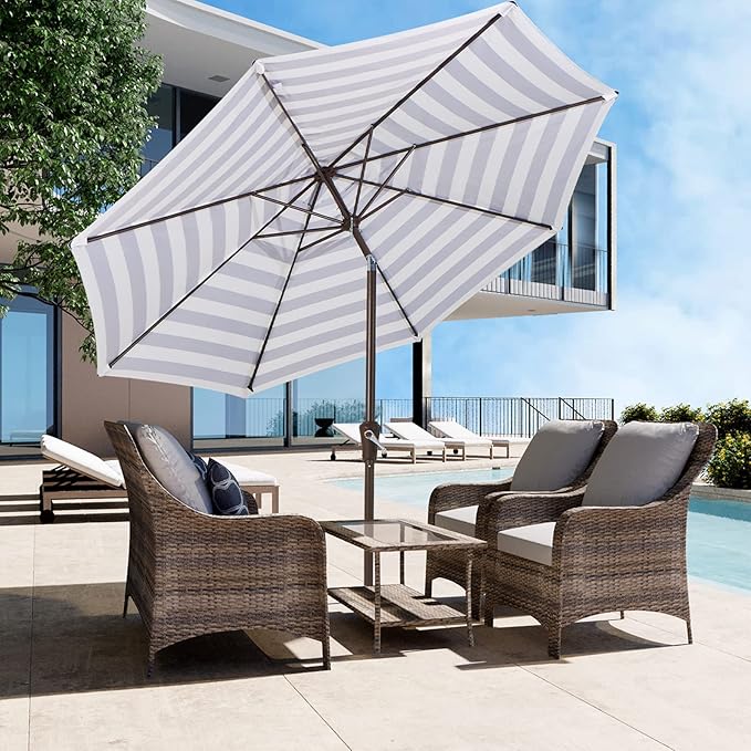 JEAREY 9FT Outdoor Patio Umbrella Outdoor Table Umbrella with Push Button Tilt and Crank, Market Umbrella 8 Sturdy Ribs UV Protection Waterproof for Garden, Deck, Backyard, Pool (Black & White Stripe)