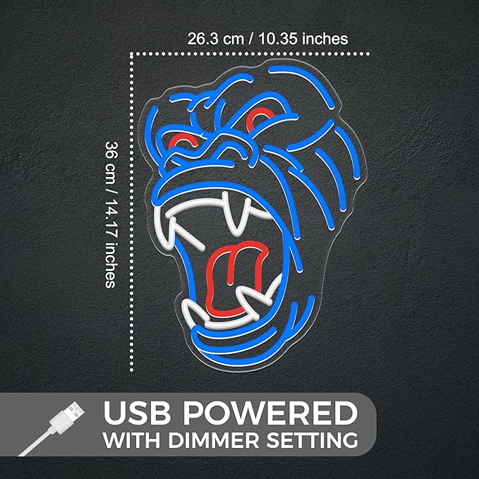 Kong Neon Sign for Wall Decor, Roaring Gorilla LED Neon Light, Kong Skull Island LED Sign, Monster Movie Wall Art, Fan Room Decor, Pop Culture Gift