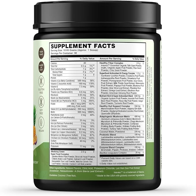 - INCREASES ENERGY & REDUCES FATIGUE: Terra Origin Healthy Greens blend is rich in adaptogens, vitamins, and green superfoods that naturally boost energy levels and combat fatigue. This nutrient-dense formula helps you stay energized and focused throughout the day, making it a perfect addition to your morning routine.