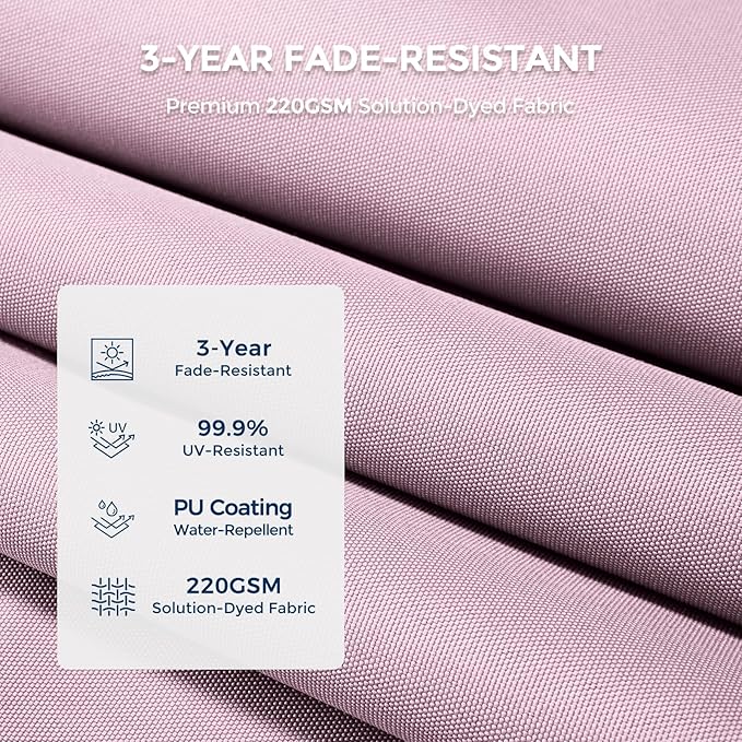 - PREMIUM CANOPY: High-quality 7.5ft 220gsm solution-dyed fabric with UPF50+ anti-UV coating provides 3-year fade-resistant, 99.9% UV-resistant, and water-repellant properties. Effectively blocks harmful UV rays including UVA and UVB to protect your health